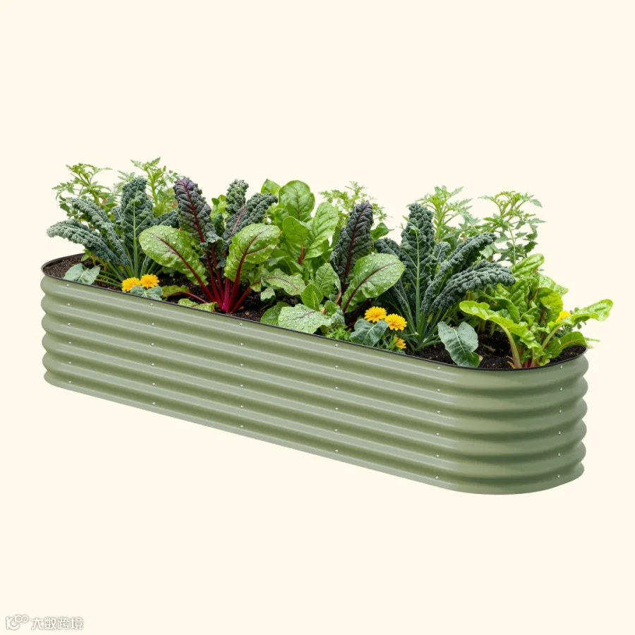 除此之外,卖点还有防锈钢材,能用20年+;经美国农业部认证的无毒食品级材料,种出来的蔬菜、水果可以放心吃,专门针对想种可食用作物的客群;提供绿、灰、白、棕等6种颜色,适配各种庭院风格。