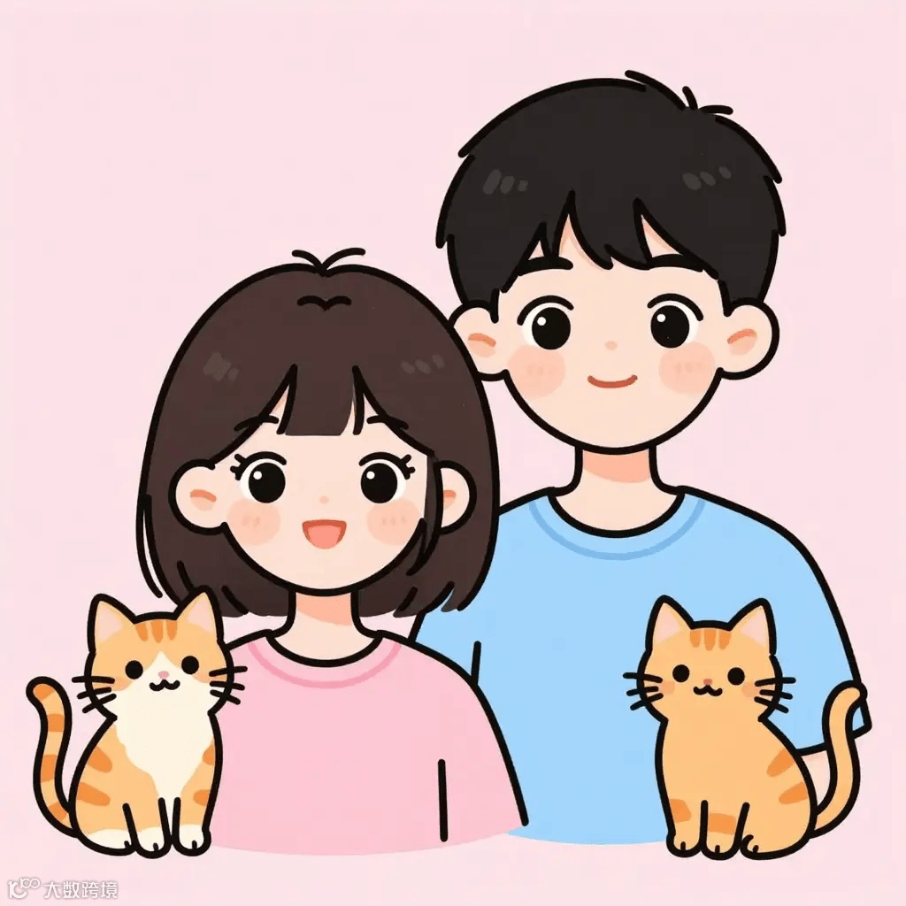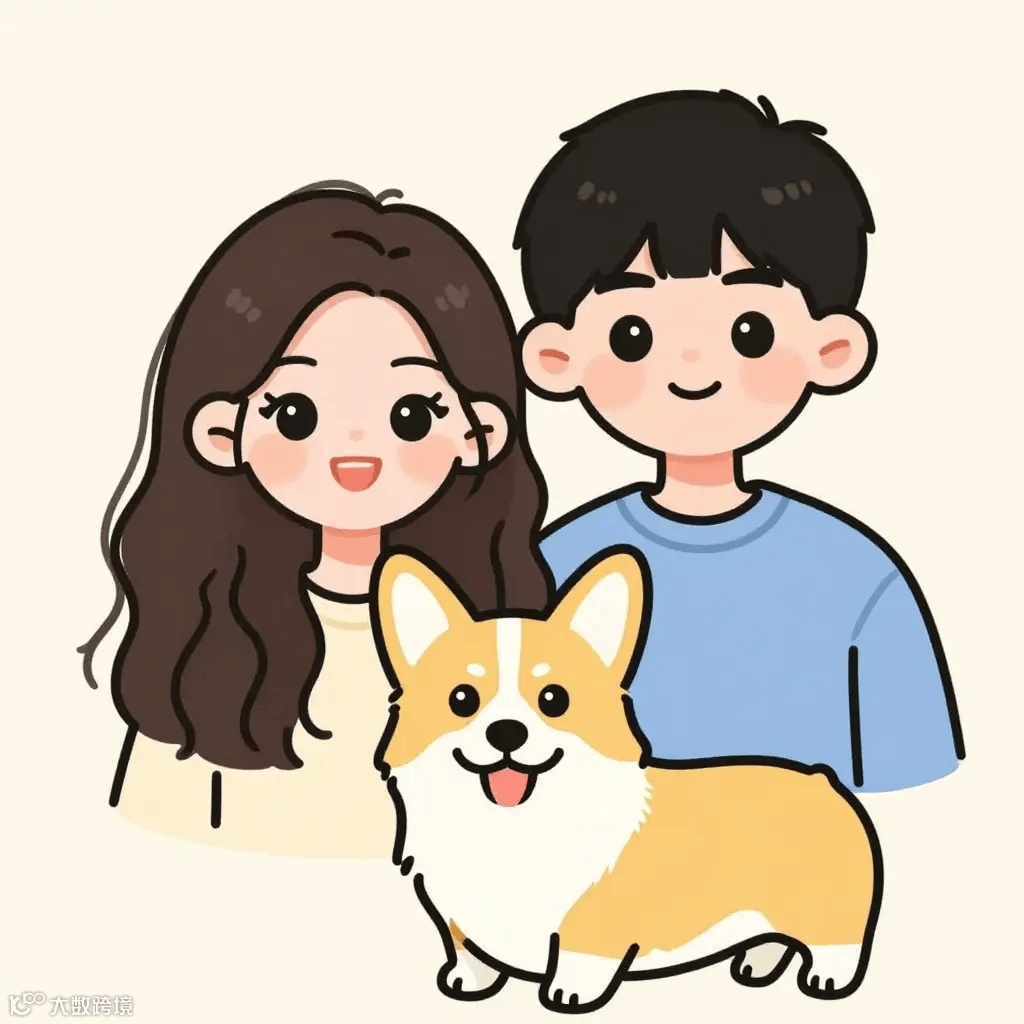 情侣与萌宠结合的Q版头像,提供个性化选择,既避免网络通用图片,又展现专属甜蜜感,适合共同使用或单独使用。