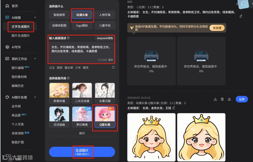 以下提示词专为Q版头像模板优化,可直接生成适配微信头像的作品。