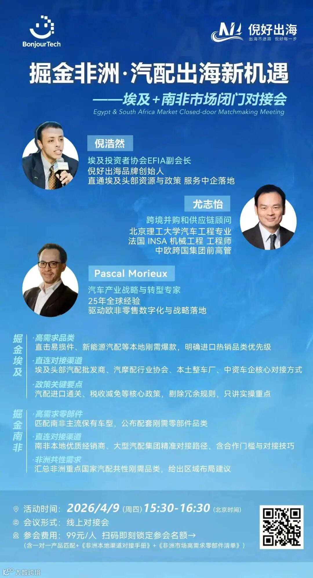费用:99元/人(含一对一产品匹配服务、《非洲渠道对接手册》及《高需求零部件清单》)