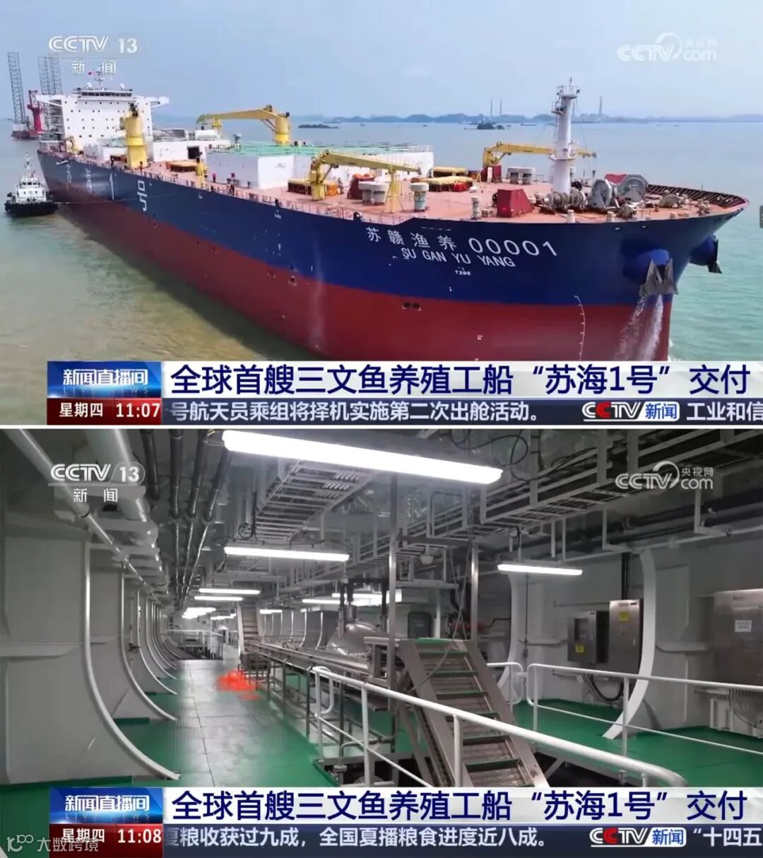 2025年国产养殖三文鱼产量突破5万吨,从进口国转向出口国。全球首艘自航封闭式养殖船"苏海1号"已投苗启用,年产能约8000吨(150万条),打造"海上移动养殖工厂"。