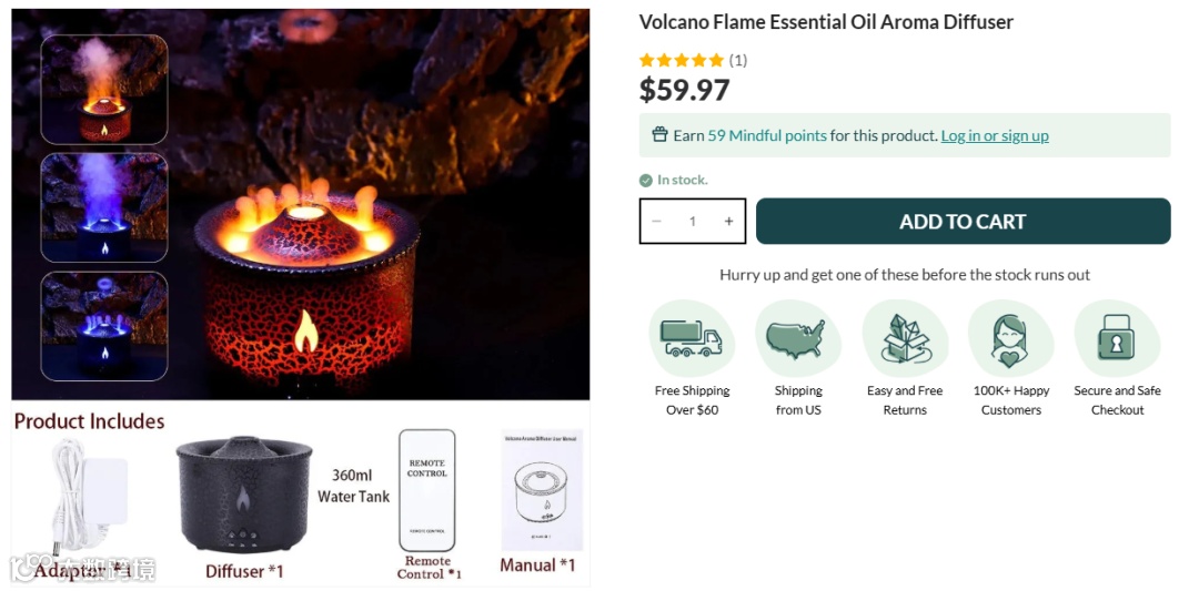 在这里,直接用刚才提到的“手穿火焰”视频挂载小黄车。文案直击痛点:“还在点危险的蜡烛?这是绝对安全的桌面篝火。”在强烈的视觉冲击和 ASMR 白噪音的渲染下, $40-$50 美金的售价完全在老外的冲动消费阈值内,极速促成无脑下单。