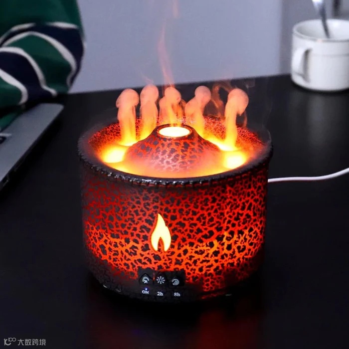 但永远不要低估跨境电商玩家的降维打击能力。有这样一款产品,它直接抛弃了实用的枷锁,利用极具欺骗性的光学魔法,硬生生在用户的桌面上点燃了一团“熊熊大火”。今天我们要拆解的这个现象级爆款,完美诠释了什么是“卖的不是机器,而是极致的感官刺激”。它就是制霸家居美学榜单的——仿真火焰/火山香薰机 (Volcano Flame Aroma Diffuser)。