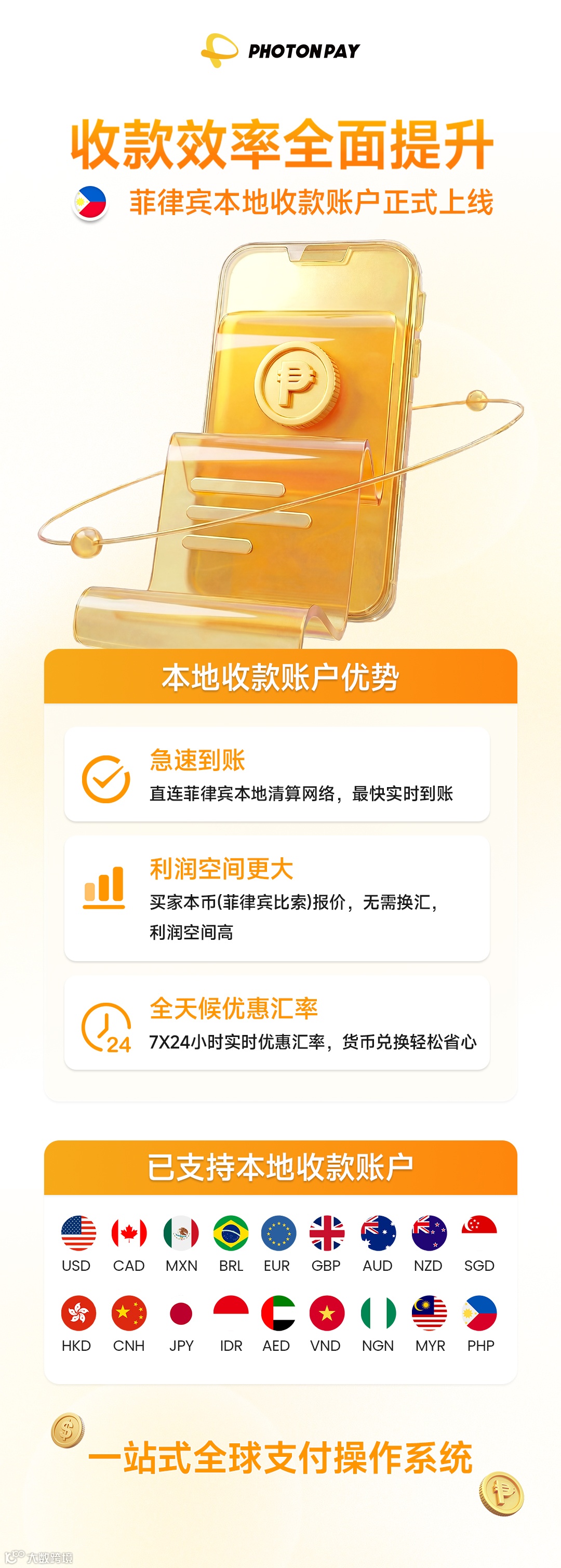 PhotonPay光子易上线菲律宾本地账户,致力于帮助企业把原本冗长、分散、低效的收款流程,转化为更顺畅、更可控的经营能力。