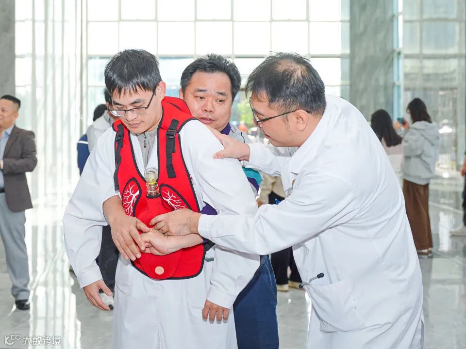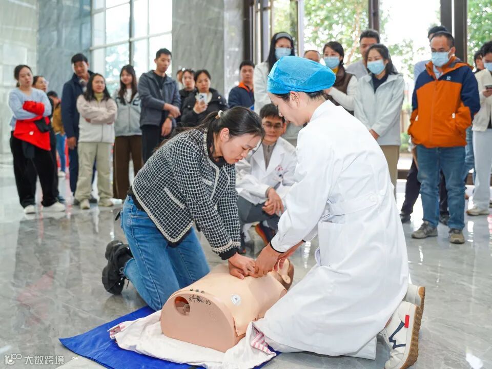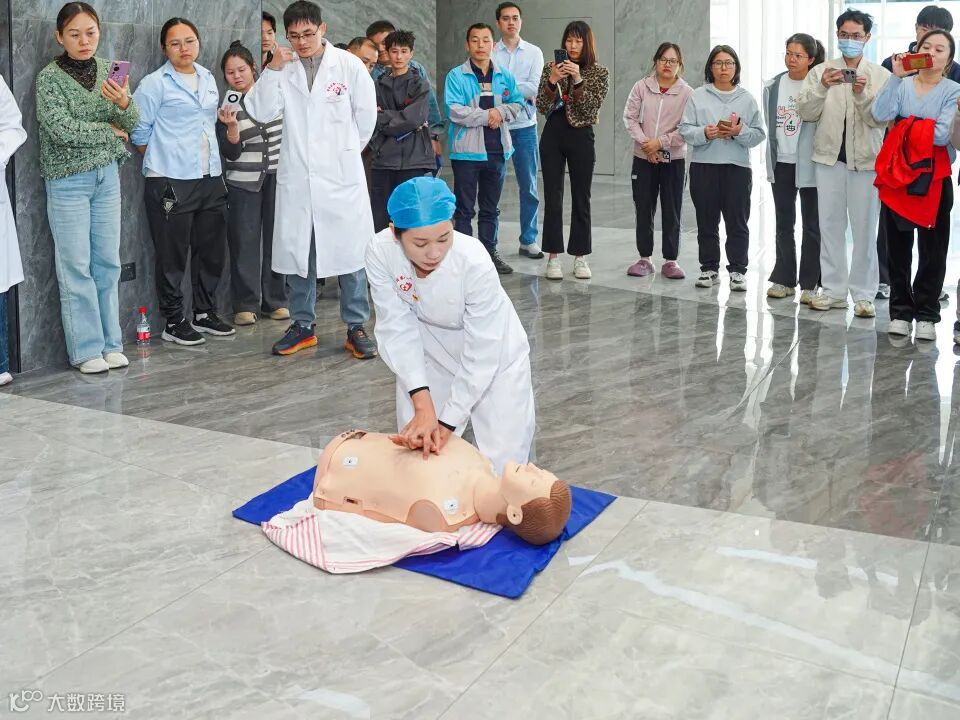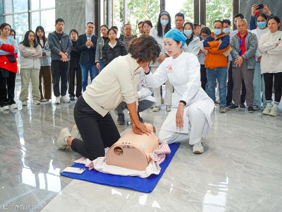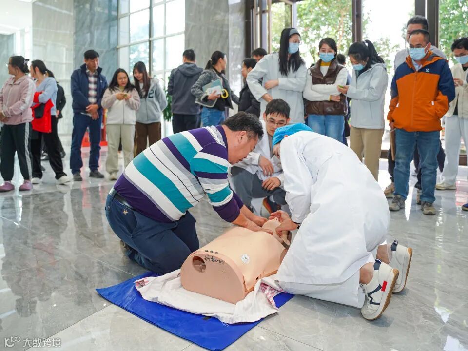 随后,该院急诊科黄文源医生聚焦《应急救护知识》,重点讲解了心肺复苏(CPR+AED)的核心要点。数据显示,我国每年心搏骤停发病人数约 104.56 万,每 30 秒就有 1 人发病,且 76.85% 发生在家中,黄金抢救时间极短。黄文源医生按照 "评估环境、判断意识呼吸、呼救、体位摆放、胸外按压、开放气道、人工呼吸、尽早除颤、评估体征、复原体位" 的完整流程,详细演示了心肺复苏的操作规范,明确了胸外按压的位置、深度、频率等关键参数,以及成人、儿童、婴儿的操作差异。同时,医护团队现场指导参训人员进行心肺复苏术、海姆立克急救法的实操练习,逐一纠正动作细节,确保大家真正掌握急救技能。