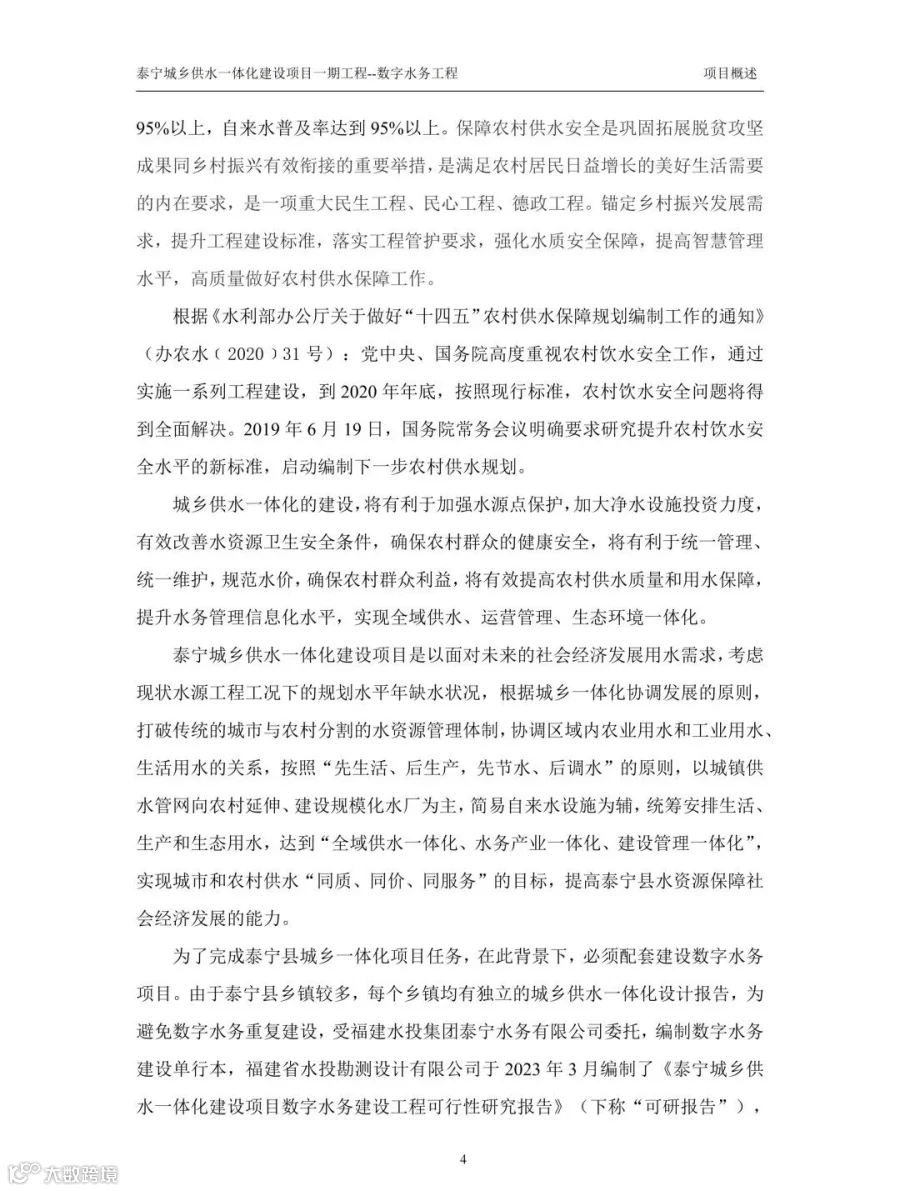 管理体系:设立了包括住建局、水务局、供水公司在内的多层级管理结构,确保城乡供水的一体化运营。