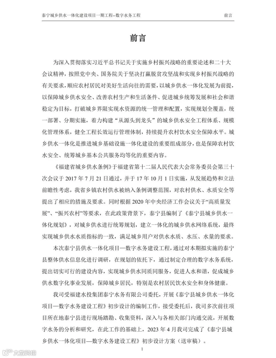 城乡供水一期工程的初步设计是整个供水项目生命周期中的关键阶段,它为后续的施工图设计、施工招标和工程实施奠定了基础。根据最新的设计规范和各地实际工程案例,其主要内容和编制要点如下: