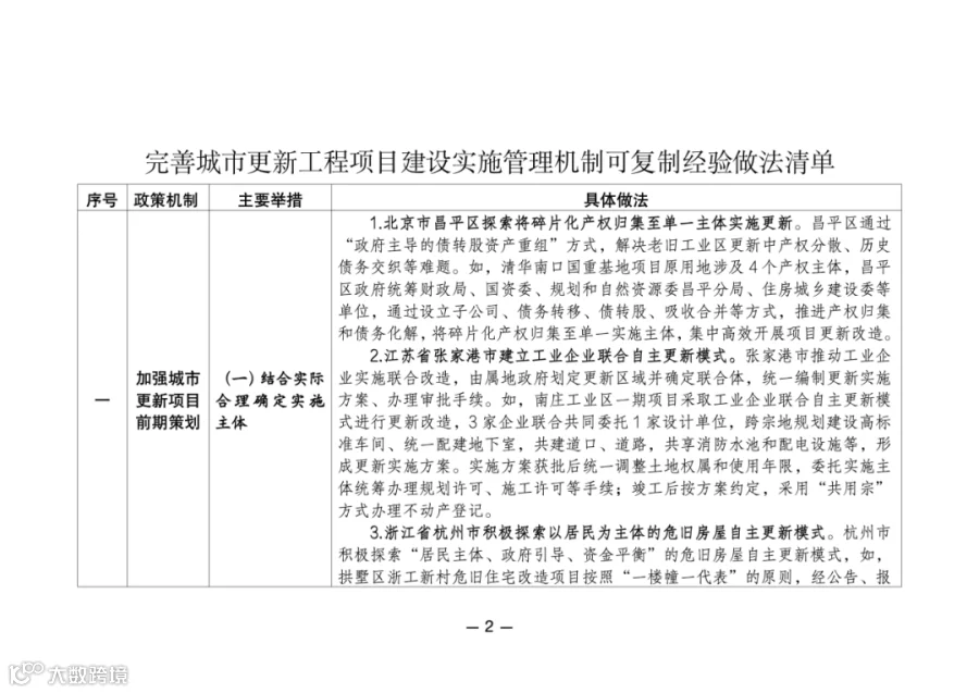 关于印发完善城市更新工程项目建设实施管理机制可复制经验做法清单的通知
