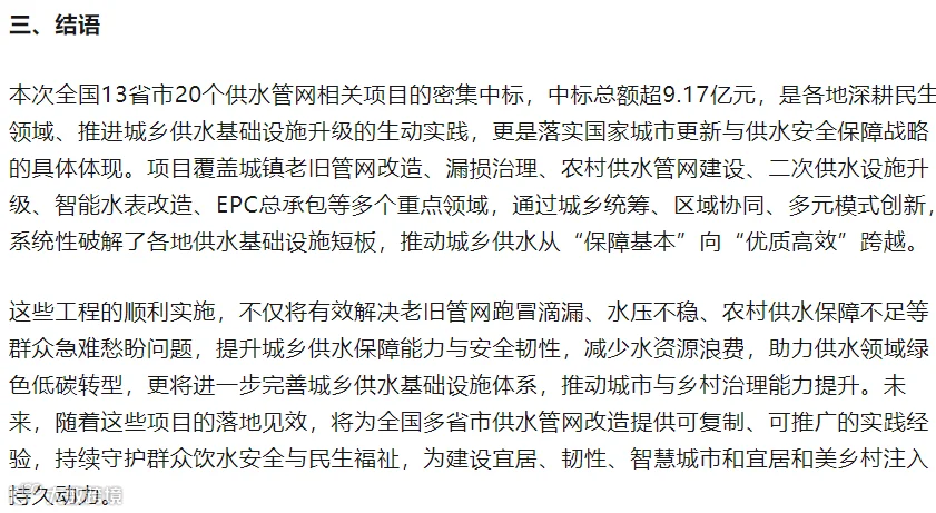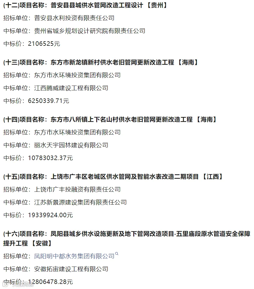 20标超9.17亿!全国13省市供水管网改造项目密集落地 中水联研究院