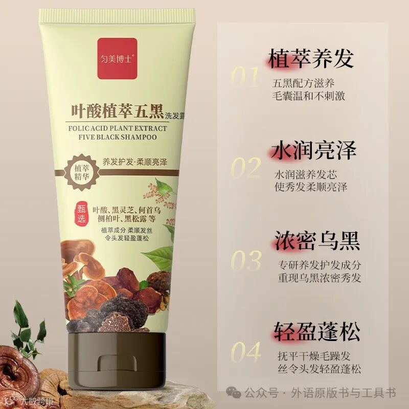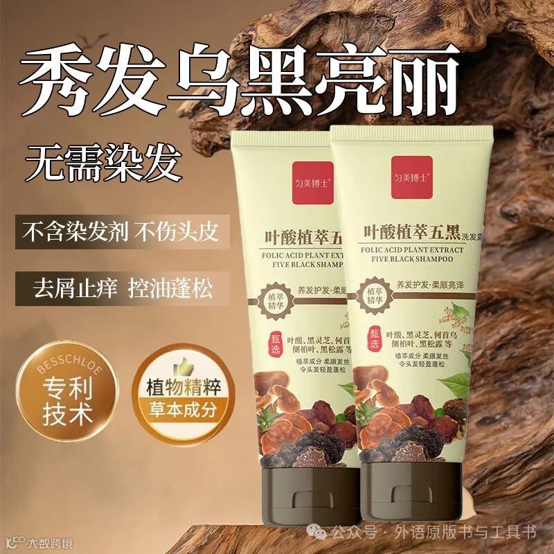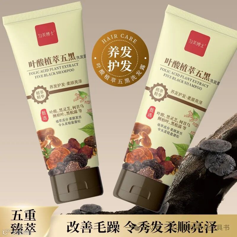 叶酸植萃五黑洗发露 养发改善毛躁控油去屑 何首乌黑灵芝 每支仅卖9元,购买请扫码