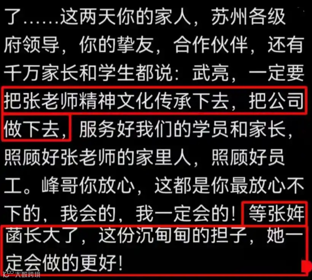 1991年出生的武亮是公司002号员工,从宁夏基层咨询师被张雪峰提拔至苏州总部。原定2026年8月22日的婚礼因故推迟,他全身心投入公司运营。武亮明确表示仅暂代管理,张雪峰名下75%股权及所有数字资产将完整交还其11岁女儿张姩菡。