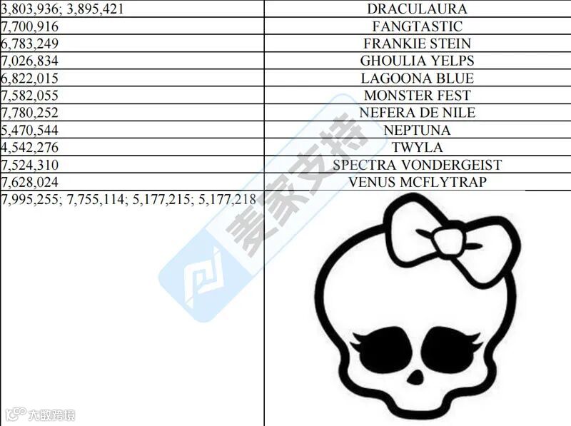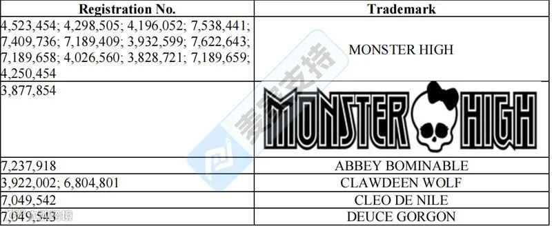 GBC律所再度出击,代理Mattel, Inc.发起全新商标&版权维权案件,涉案品牌是备受青少年喜爱的Monster High精灵高中!此次维权剑指角色版权以及文字、图形商标未经授权的侵权行为,涉及产品线极为广泛,玩偶配件、主题游戏屋、玩具汽车、图书、电影、游戏、拼图、服饰、饮品、糖果、食品等众多领域均在其列。