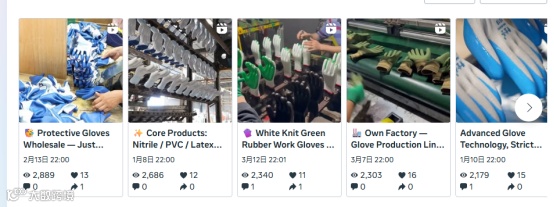 针对B端买家核心诉求——员工安全保障,Facebook内容聚焦真实工业场景视频,直观展示手套在油污、锐器环境下的防护性能。
