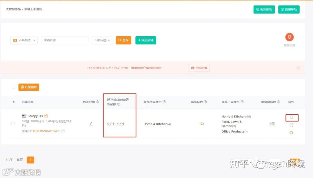 既然我们可以跟踪竞争对手进行选品,那么竞争对手也是在不断的进行新的选品,虽然可以把已有的产品复制过来,但是一些新兴的产品可能会错过,这时候可以通过卖家精灵的店铺上新监控功能来帮助我们监控竞争对手店铺有哪些上新的产品: