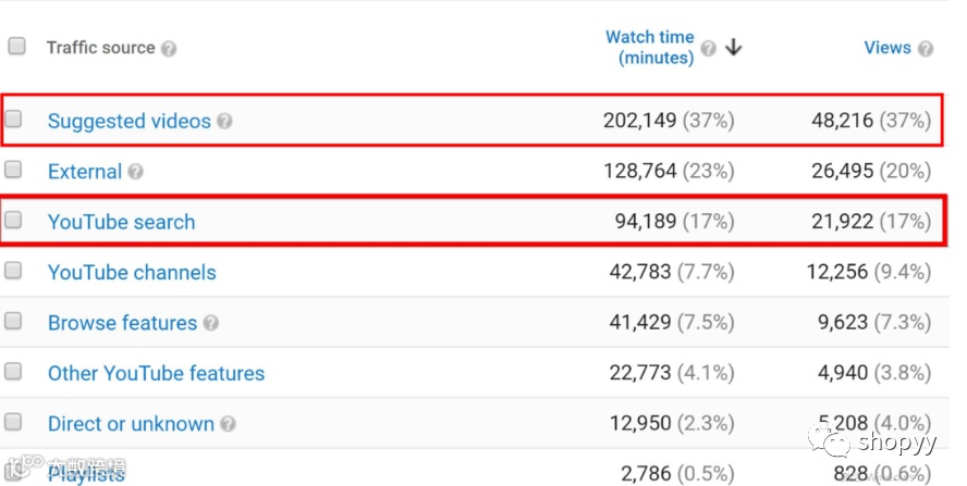 流量来源不同:YouTube视频的流量来源主要来自于“Suggested videos(推荐视频)”。
