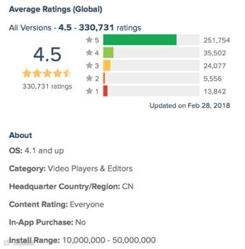 抖音的海外版本 Tik Tok 自去年 5 月 12 日在谷歌商店上线以来,取得了显著的成绩——全球总安装量超过 1 千万,评分达到 4.5。