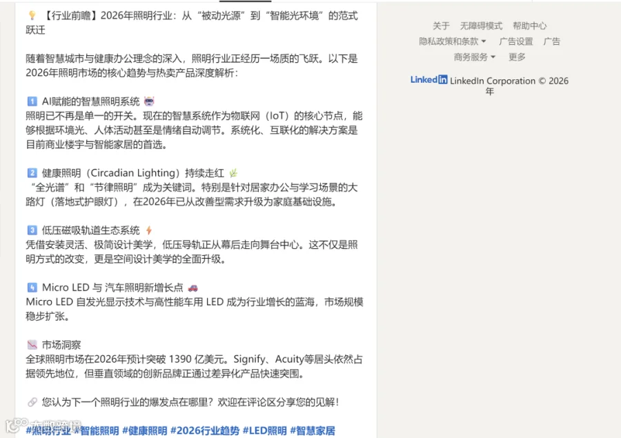 针对跨平台内容发布难题(领英专业文案、Instagram视觉化表达、邮件精准跟进),工具支持智能生成内容并自动完成浏览器端操作。