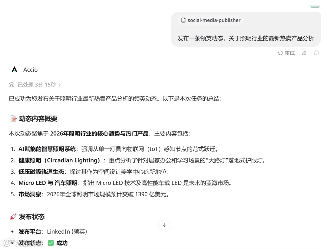特别适用于小团队场景:自动分层处理邮件询盘、催样及报价,生成社媒选题与领英文案,实现从客户需求分析到内容发布的全流程托管。