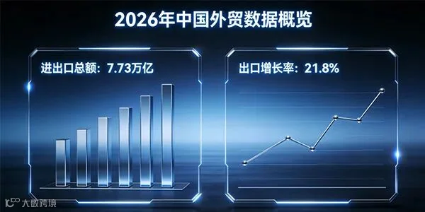 据海关统计,2026年前2个月,我国货物贸易进出口总值7.73万亿元人民币,同比增长18.3%,实现开年"开门红"。其中出口4.62万亿元,增长21.8%。