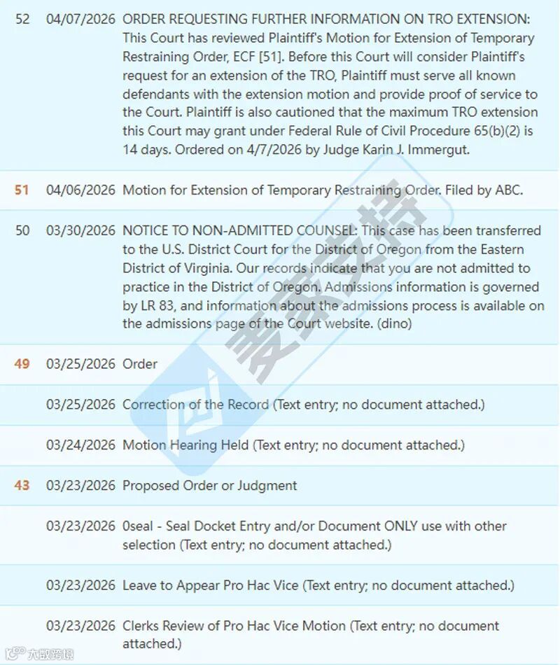 ★公众号导航栏WorldTRO,免登录输入案件号即可查看任意美国TRO案件最新走向【实时同步美国司法案件系统数据】