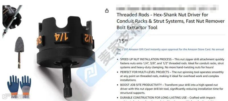 Nut Zipper是Titus Industries LLC研发的一款专为快速拆卸螺母设计的钻头附件工具,通过电钻驱动,利用套筒与弹簧或卡爪结构固定螺母,防止滑脱。Nut Zipper适用于机械维修、汽车保养、建筑施工及家庭DIY等场景,能高效拧紧或拆卸生锈、紧固的螺母,是提升操作效率的理想选择。