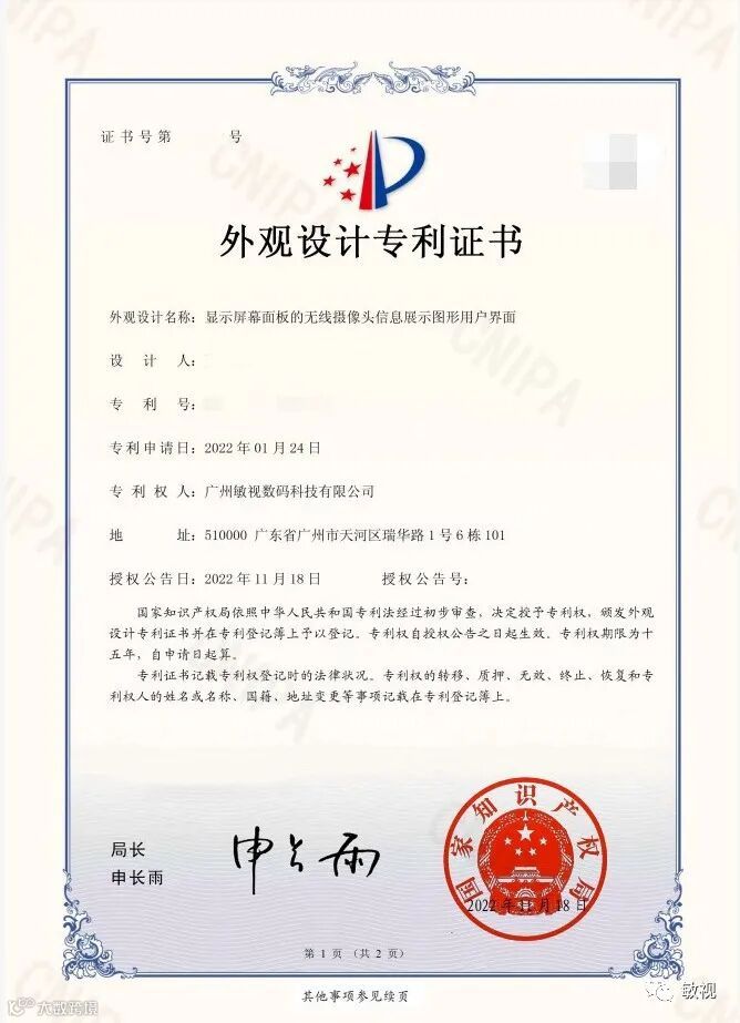 截至2022年12月30日,敏视今年累计获得发明专利2项,外观专利9项,实用新型专利3项,软件著作权19项,“广州市2022年创新产品”2项,并通过知识产权贯标,入库广州大数据/人工智能企业,知识产权成果硕果累累!