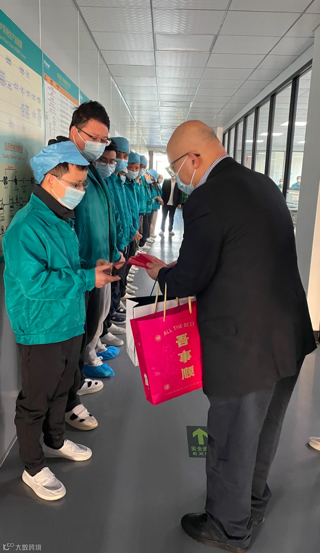 “新年好!”“新的一年祝大家大展宏′兔′!”伴随着温暖的话语,石锡敏总经理亲切地与员工互致新春祝福和美好祝愿,为到岗员工送上问候和祝福,大派团拜红包!