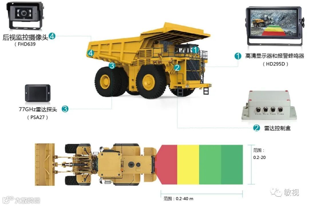 敏视盲区雷达检测系统特别适合挖掘机、矿车等工程车辆的操作使用,这类车辆作业环境复杂,道路坑洼,视野不好,盲区威胁大,无论是白天还是晚上作业,都存在极大的安全隐患和驾驶风险。