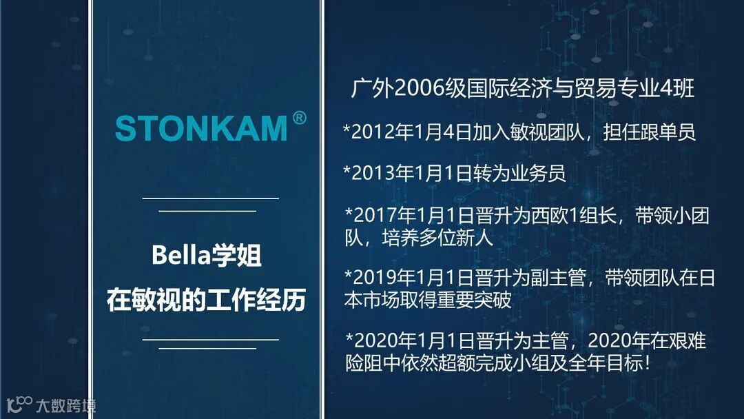 本次宣讲会邀请到广外学姐Bella,为我们分享她在敏视的成长与感悟。在敏视的工作经历中,学姐去过许多国家,接触过很多客户,体验过带团队的艰辛,通过一点一滴的努力换来今天的成果,相信大家在听完学姐的分享后也是收获满满,对职场有了新认识。