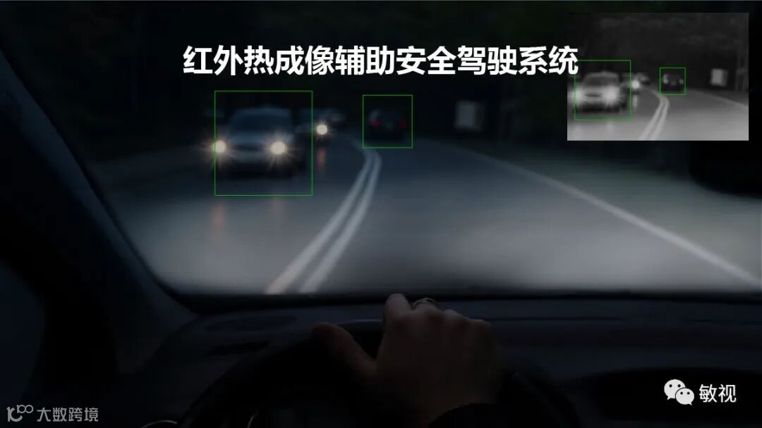 没有强大红外能力加持的摄像头就像人眼一样,在光照弱的情况下辨识度受限。而红外热成像探测的是物体表面辐射的红外能量,不易受可见光和天气的影响,在夜间及雾天依然可以清晰、准确探测前方的行人、车辆等目标,加上防眩光干扰的优势,因此对于提升夜间行车安全大有可为,帮助司机拨开迷雾见“路”明。目前,很多品牌汽车已经搭载红外热成像摄像头,用于改善雾天等条件下的感知能力。