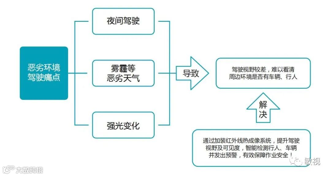在自动驾驶的感知技术中,毫米波雷达和激光雷达都有不足之处,比如毫米波雷达存在识别区间限制、对金属物过于敏感,而激光雷达对于恶劣天气有时会误判。在这些传感器无法对恶劣天气、环境做出有效应对的场景中,红外成像传感器可以提供感知的重要辅助,是行驶安全关键“一把手”。