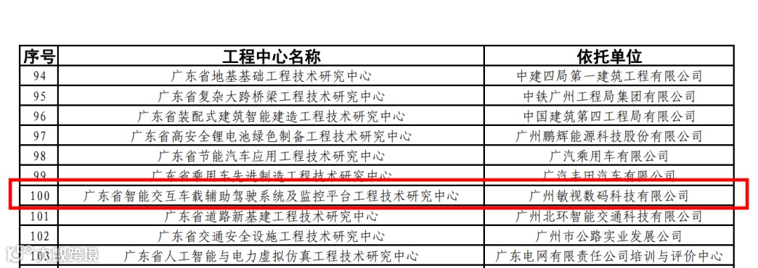 近日,由广州敏视数码科技有限公司建设的“广东省智能交互车载辅助驾驶系统及监控平台工程技术研究中心”,被广东省科学技术厅认定为2021年度广东省工程技术研究中心。此次入选,是对敏视在智能车载技术领域的创新和综合实力的肯定!