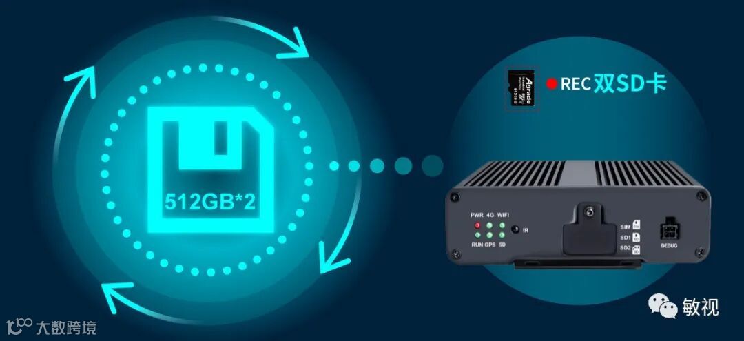 敏视四路AI智能车载硬盘录像一体机采用双SD卡大容量便携式储存,由于没有硬盘隔振等技术门槛,降低成本,价格上更具优势!