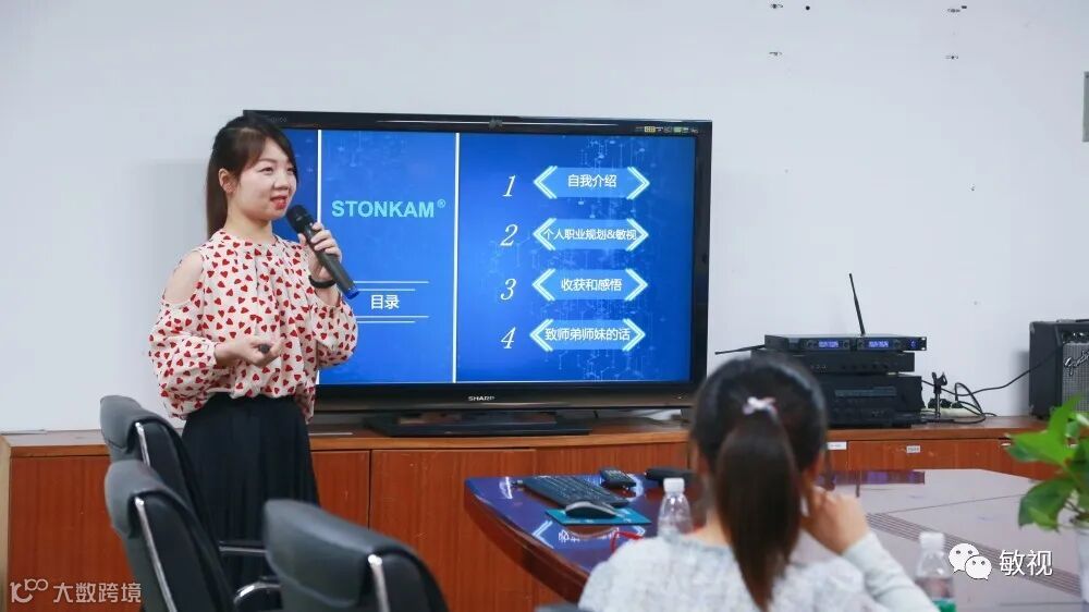 接着来到分享环节,在敏视营销中心任职的两位广外师姐先后上台分享,阐述了选择敏视的理由和身为敏视人入职以来在敏视大家庭的生活和发展。两位师姐平易近人,以自身为例,向学生展示了一名毕业生在敏视的职业发展进程。同学们从师姐们的分享中认识到敏视是一个注重“学习文化,竞争文化,团队文化”的职业发展平台,对敏视的职场生活了解更进一步。