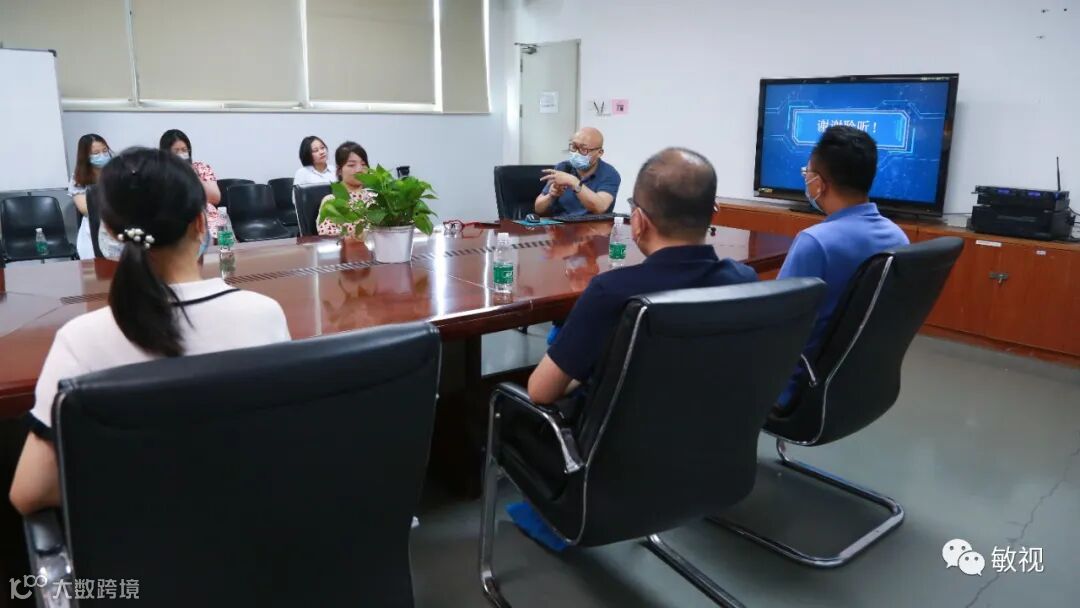 随后,众人移步会议室,首先人力资源中心王经理向师生们介绍了敏视发展历程、企业文化、组织架构、业务模块、服务客户、最新技术成果、未来发展方向等内容。同学们仔细聆听,不时拍照记录,还兴致勃勃地针对感兴趣的部分向王经理提问。王经理耐心解答,并重点向广外师生们推荐专业对口的营销推广类热招岗位,对该类岗位的薪酬福利、人才培养政策及福利举措做出了详细解析,欢迎同学踊跃投递简历,加入敏视。