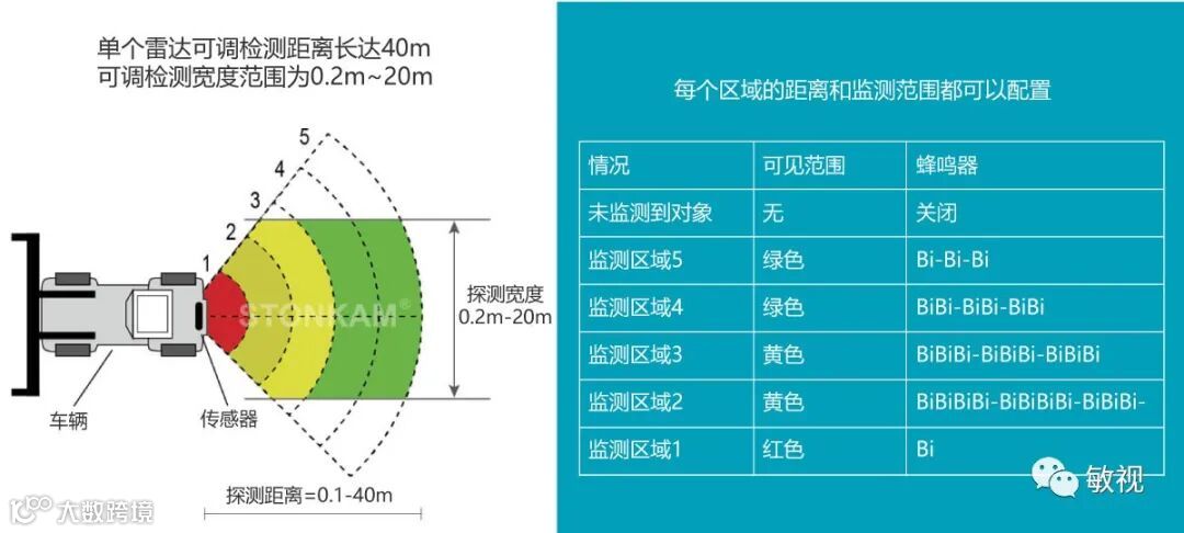 与自带红外补光灯的1080P高清摄像机配合,可以实现多达64个目标分辨,不仅可以立即定位入侵范围的目标点位,而且能够获得清晰图像信息,便于驾驶员做出快速响应,从而避免事故发生!