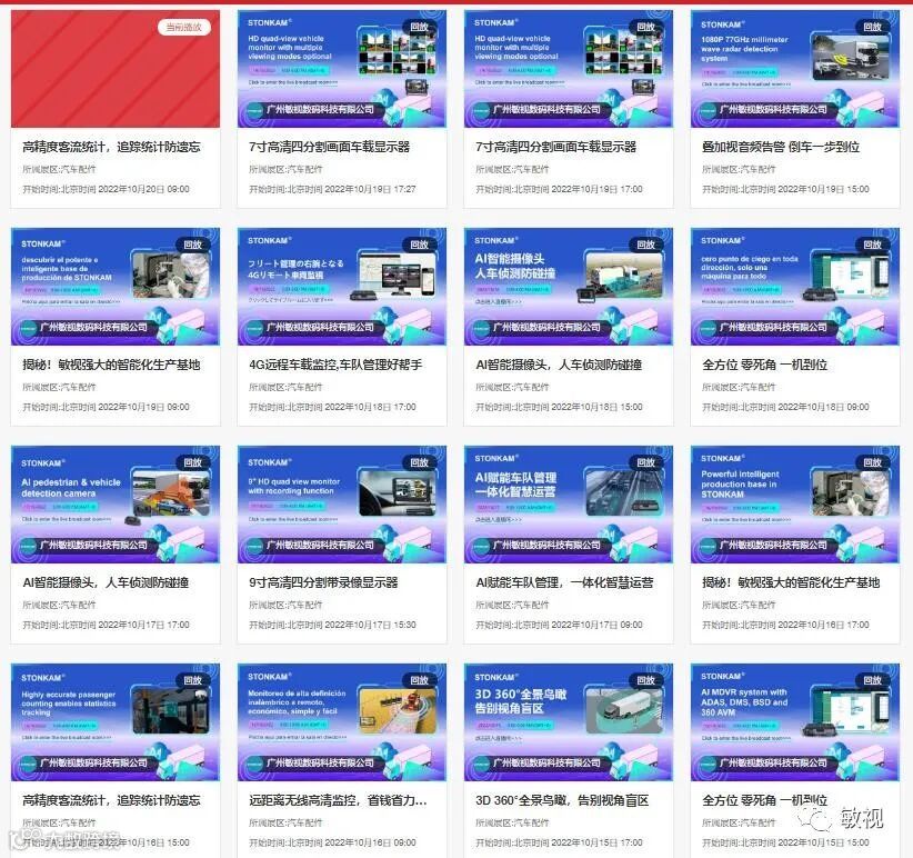 智能车载产品和解决方案赋能公共交通、出租、货运物流、工程建筑、矿场、特种车、航运、港口、农业等行业。截止目前,敏视已完成线上多语种直播16场,自带流量体质,5大语种主播专业精彩的产品介绍、演示以及答疑吸引了众多来自北美、南美、欧洲、亚洲、非洲、大洋洲等地区采购商的观看、点赞和留言,这是敏视在第132届线上广交会开幕5天以来交出的亮眼成绩!