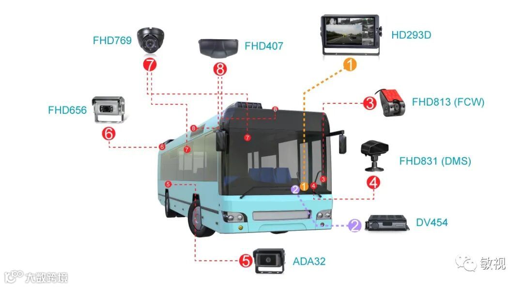 敏视AI智能高清录像系统集成BSD算法,实时智能侦测车辆侧前方、侧方和后方的行人&车辆,避免因公交车庞大的车身遮挡的视觉盲区造成意外事故,是大型车辆必不可少的行车安全辅助系统!