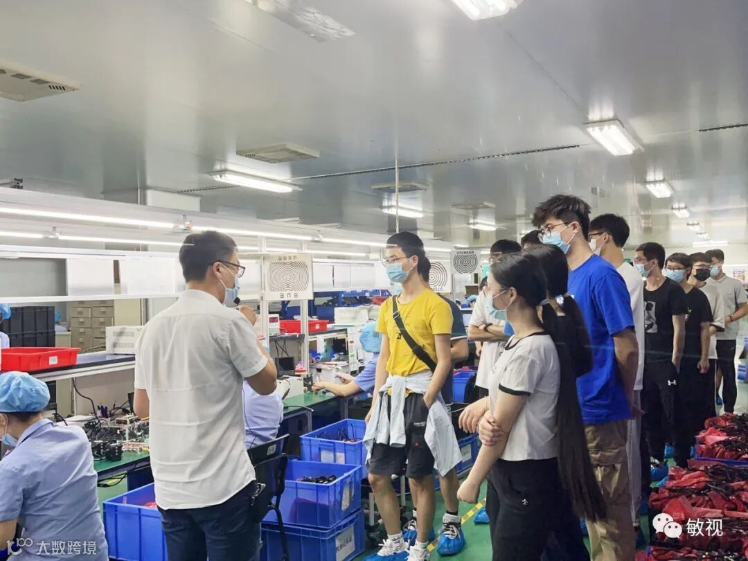 交流活动期间,人力资源中心王经理、生产中心程主管及敏视在职的2位广大校友陪同广大师生重点参观了敏视各生产产线车间和实验室,为大家揭秘一台品质上乘的敏视车载监控产品是如何诞生的!整齐有序的生产车间、如火如荼的生产节奏和舒适温馨的办公环境,以及各项先进自动化测试仪器的应用,使得广大学子进一步领略到全球领先的视觉方案供应商——敏视的风采!
