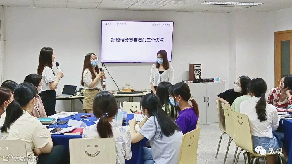 在分享会上,阅读讲师结合樊登老师解读《心态》的影片,和来自敏视营销中心和人力资源中心的近40位敏视人系统性剖析了《心态》这本书的重点内容。并引导大家在阅读中思考,现场二人分为一组热烈讨论书中阐述的多种心态。每一轮讨论过后,均有多对读书搭档迫不及待地上台分享讨论结果,从亲身经历到思维启发,踊跃表达自身对于调整心态的感悟与做法,给在座的敏视人提供调整心态的新思路,现场气氛相当热烈。