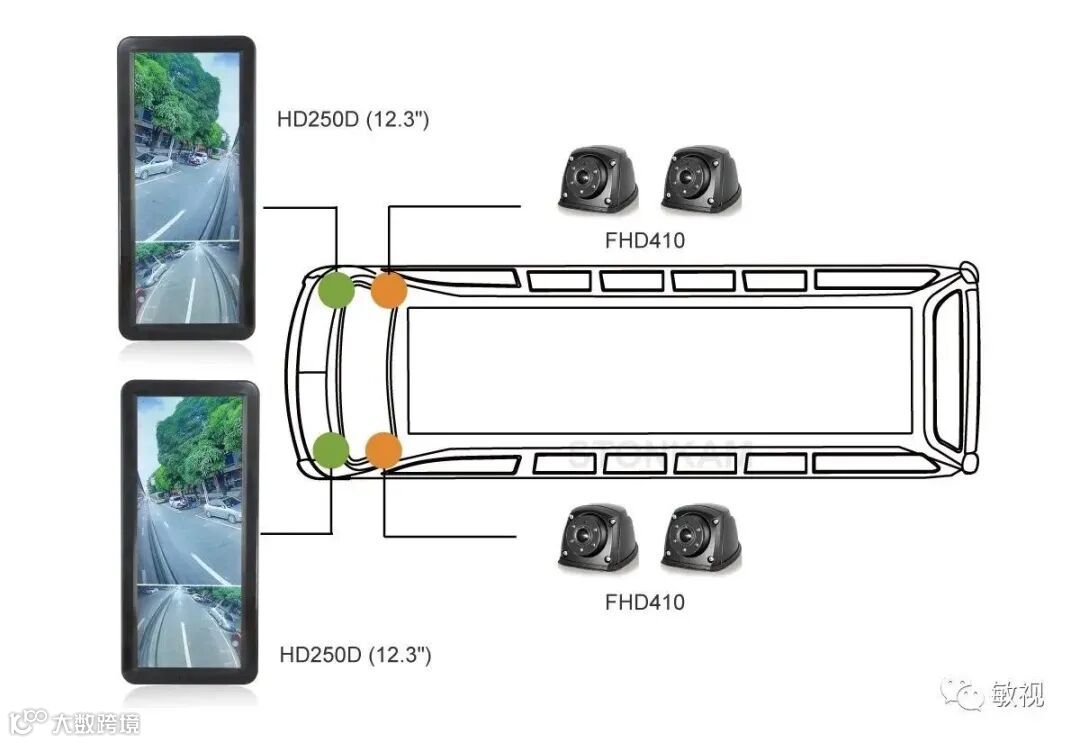 而安装在车内的敏视12.3寸高清电子后视镜,与防水WDR双镜头侧边摄像头搭配使用,不仅有更大、更清、更安全的左右视野,还有更高夜视感光,无惧雨雪、风沙等复杂天气环境,满足驾驶员全天候高清的视频监控需求!