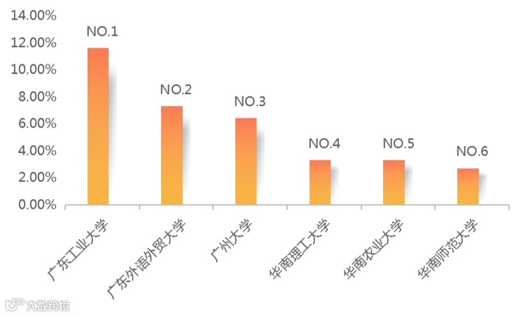 广东大学生毫无悬念的拿下榜单前六名