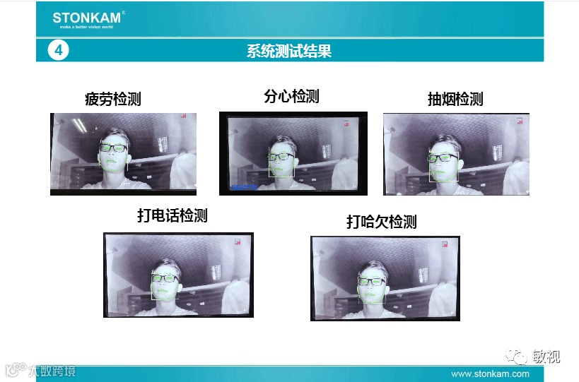 敏视驾驶员行为监控系统采用深度学习算法,实现了分心、疲劳、抽烟、打电话和打哈欠等多行为判断,当出现以上不规范驾驶行为,则会发出嘀嘀的警报声,对驾驶员起到警醒的作用。当驾驶员出现如低头这种行为,此系统也能借助边缘和五官监督的人脸对齐框架进行提醒警示,可有效减少此类意外交通事故的发生!