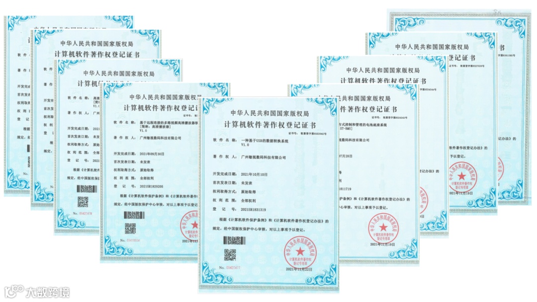 近日,经国家版权局和知识产权局审核批准,敏视获得9项计算机软件著作权证书!产品研发与科技创新能力再获国家认可,公司知识产权工作再创佳绩!