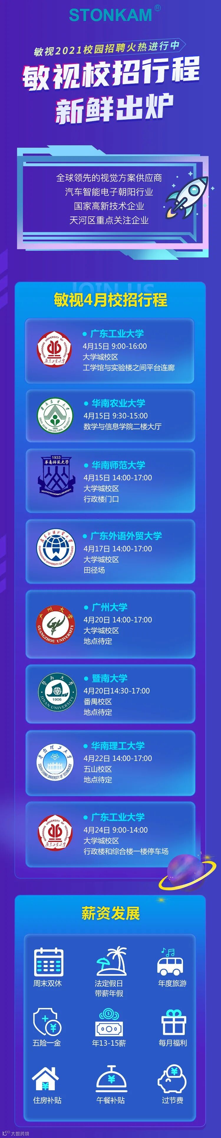 导读:敏视校招行程来啦!先后打卡广州7大高校,让你在春招季末快速拿下offer!