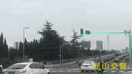 前段时间江苏昆山交警在个别路口启用了“新型Plus版信号灯”。这种信号灯的灯杆上有两条醒目的光带,会随着信号灯变化。