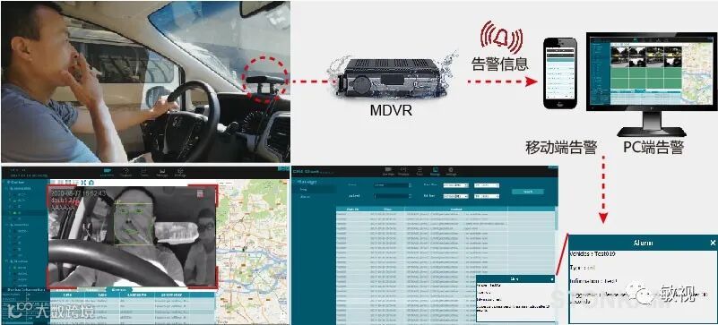 当搭配我们的车载录像机系统使用时,车载录像系统可自动记录并上传驾驶员疲劳监测系统发出的报警事件;报警信息将同时弹出在PC客户端/手机Android APP,供车队管理员分析车辆的行驶状况。