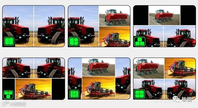 支持单画面,双画面,三画面,四画面,品字画面,Y画面,H画面和PIP画面等显示模式,多种分割模式,自主切换,能满足您的多样需求。