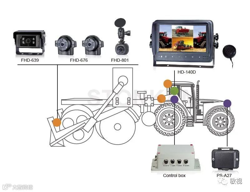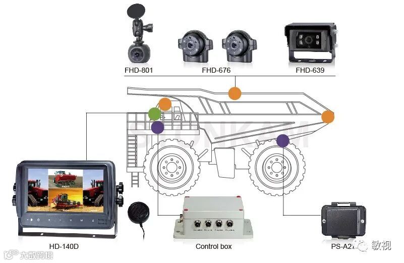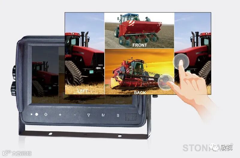 敏视7寸防水高清四分割车载监控显示器(系统)易于安装,操作方便,应用广泛,特别适合农机和工程机械等车辆的使用。