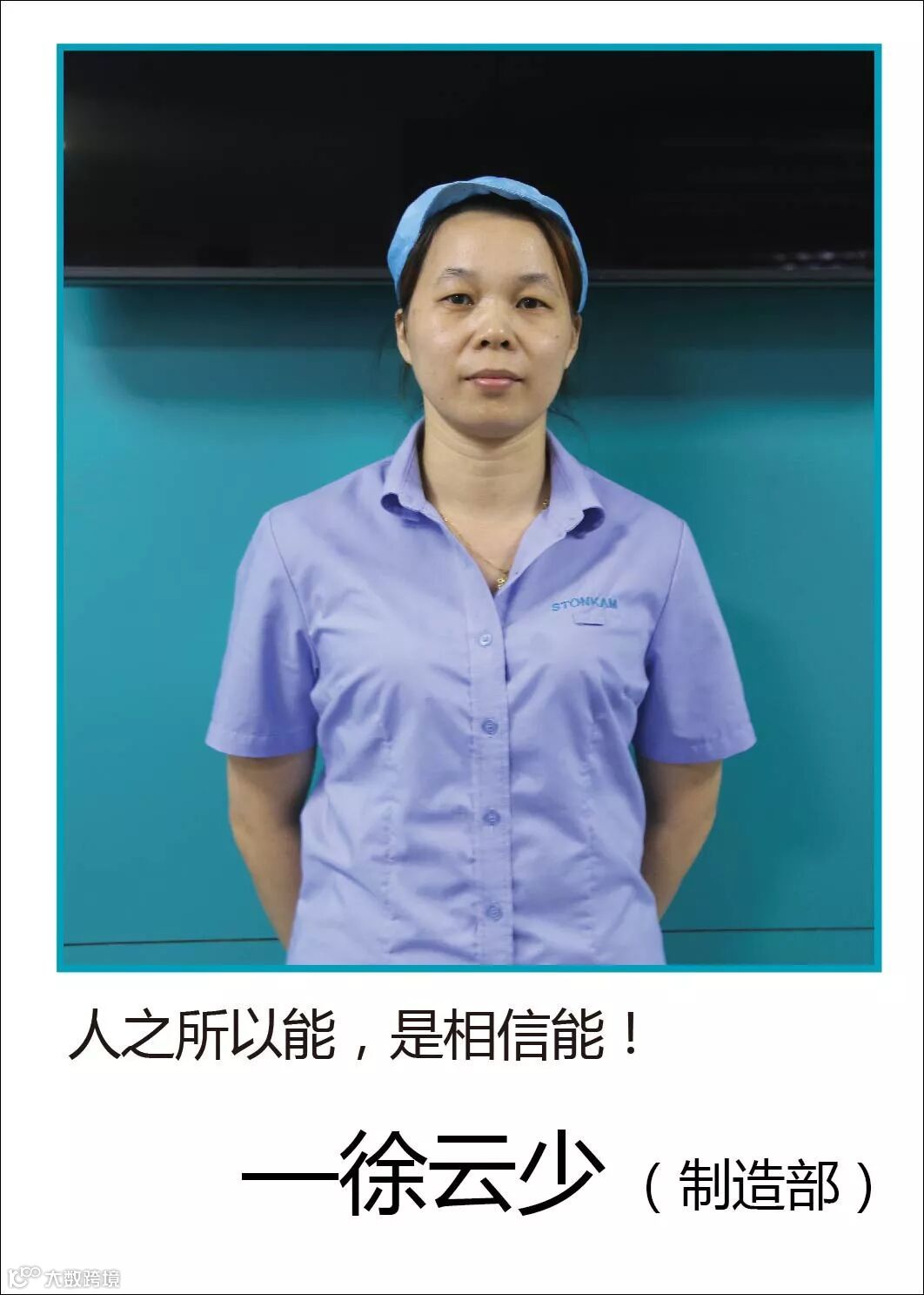 他们都是STONKAM®6月优秀员工获奖者中的一员。他们勤奋好学,互助团结,在平凡的岗位中默默耕耘,不断磨炼心智与技能,让自己的光芒愈发闪亮,是我们学习的良好榜样。下面一起来看看,他们到底是谁: